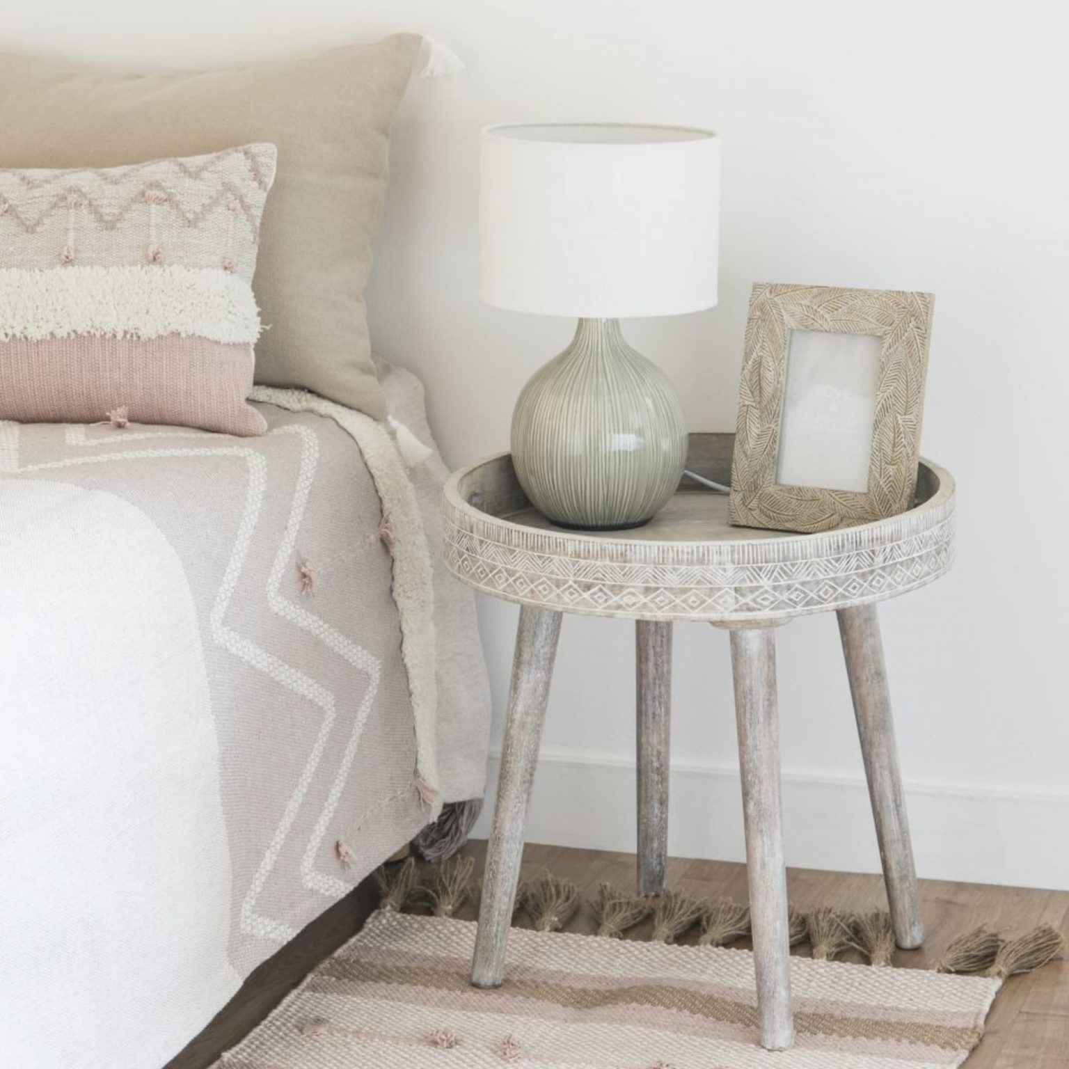 Utiliza la técnica de añadir 3 objetos, como he mencionado anteriormente y añade objetos de diferentes materiales: madera, cerámica, fibra natural, dorado. Elige aquel que mejor combine con el resto, se debe crear EQUILIBRIO en su conjunto.