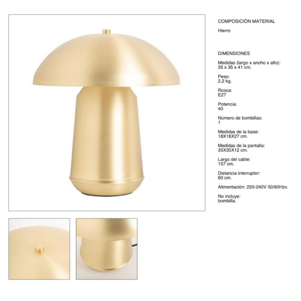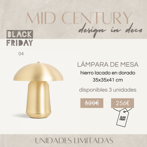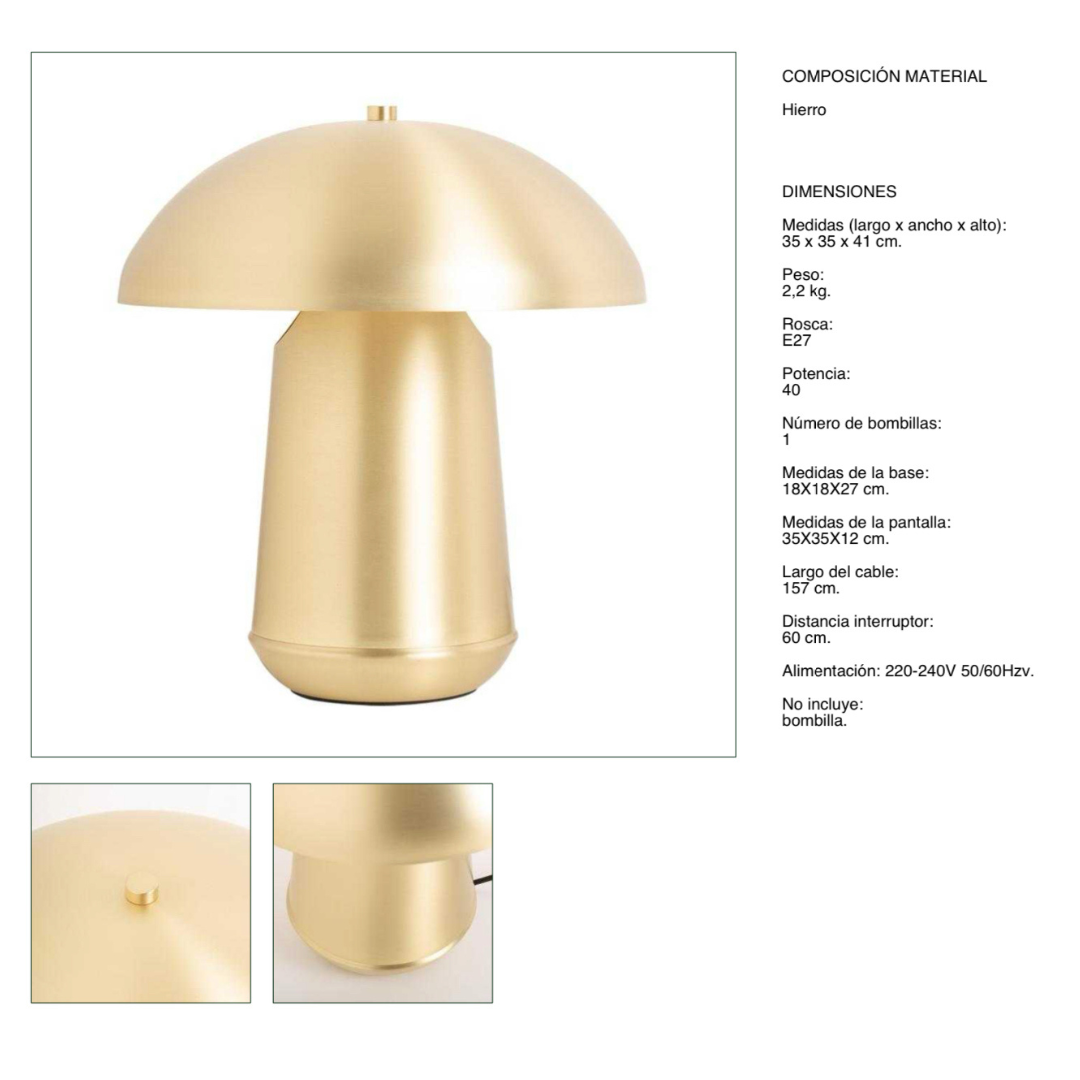 Esta lámpara de mesa destaca por su diseño moderno y minimalista, perfecto para añadir un toque de elegancia a cualquier rincón de tu hogar. Fabricada en hierro con un acabado dorado, no solo ilumina, sino que también aporta estilo y personalidad. Su estética refleja la esencia del diseño mid-century, combinando funcionalidad y sofisticación.